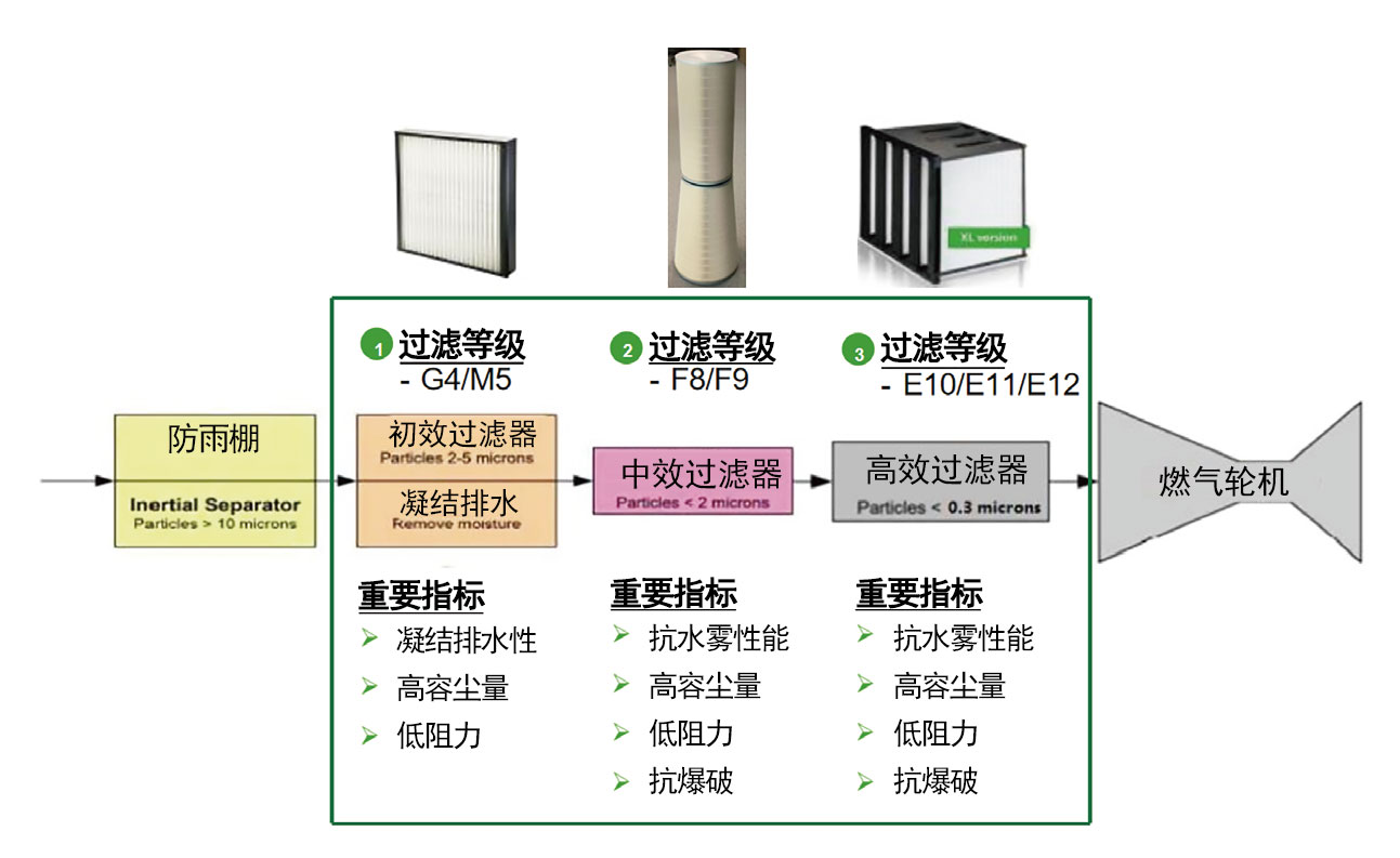大风沙、干燥地区燃气轮机进气系统解决方案: