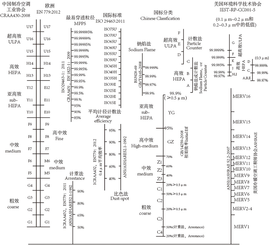 过滤器效率对照表: