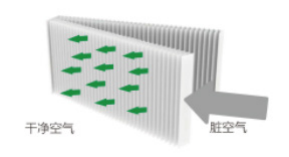 采用特殊设计的双层高密度玻纤滤材,粗纤维进风面配合细纤 维出风面,使得滤材在整体上都具有良好的集尘性能,显著的 增加了容尘量。